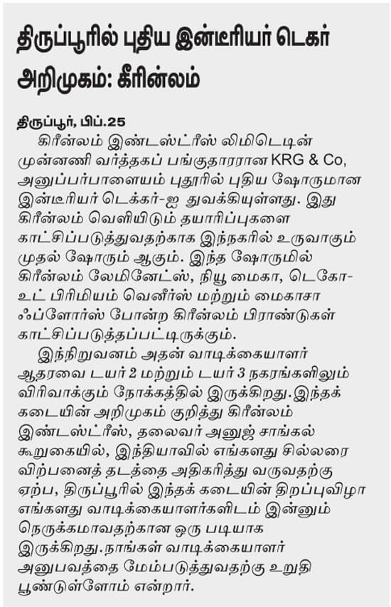 Greenlam showroom in Tirupur